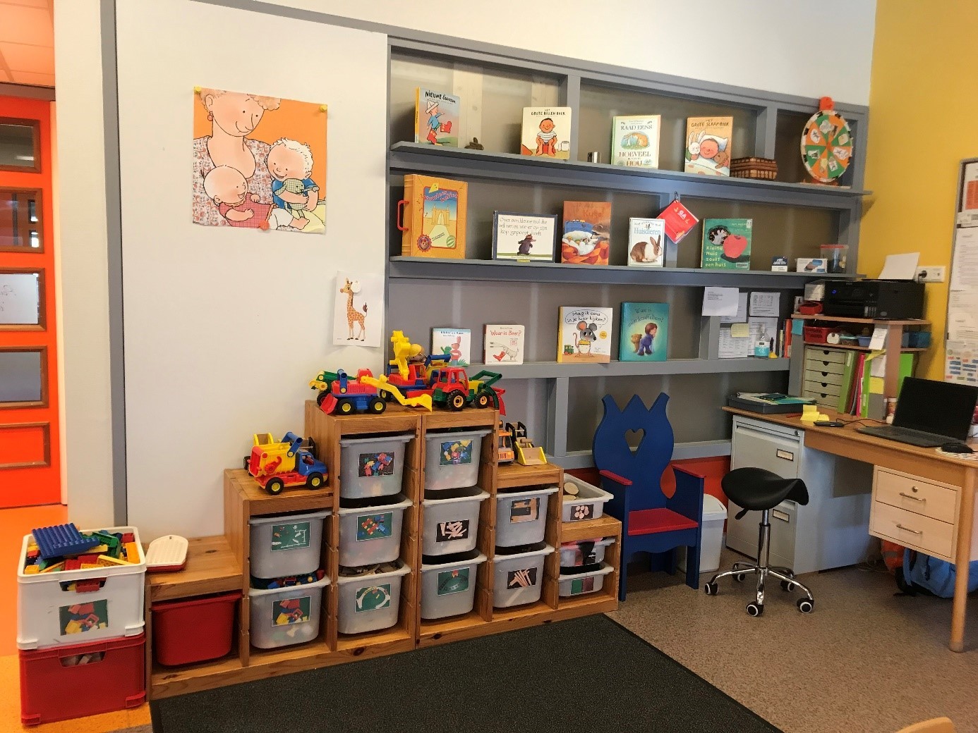 Extra bijzonder is onze ‘groepsbus’. Deze houten bus staat in onze ruimte en hangt vol met foto’s van de peuters en medewerksters van onze groep. Zo wordt het écht een plek van ons allemaal.